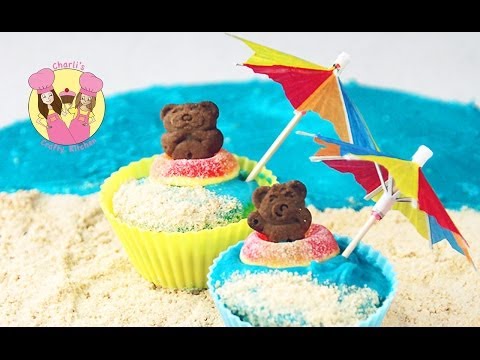 Beach Themed (Teddy Graham) Cupcakes | Meagan Makes Cupcakes - Teddy Graham Cupcakes - Today I will be showing you how to make beach themed cupcakes. These would be perfect for a beach party or any kind of outdoor event involving water! Things ...