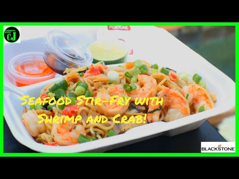 Seafood Stir-Fry with Shrimp and Crab on the Blackstone Griddle! (2018) - Crab And Shrimp Stir Fry - Today we have the last cook from the SoCal Creator Meet-Up! Kirby and Marion cook up an awesome Seafood Stir-Fry, while I (CJ) supervise! Please subscribe ...