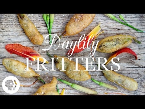 Daylily Flower Recipes }}- Recipe: http://to.pbs.org/Wy1XGw Have you ever tried edible flowers? These daylily fritters are not only a great campfire snack, they taste like a cross between ...