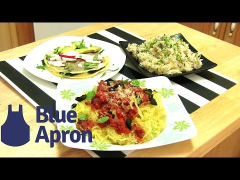 Roasted Spaghetti Squash, Mushrooms Risotto & Kale Quesadilla | Dinner Made Easy with Blue Apron! - Spaghetti Squash Risotto - First 50 viewers will get two meals off their Blue Apron order free! Click here: http://cook.ba/1OMbLF2 I am lucky to be sponsored by Blue Apron and very thankful ...